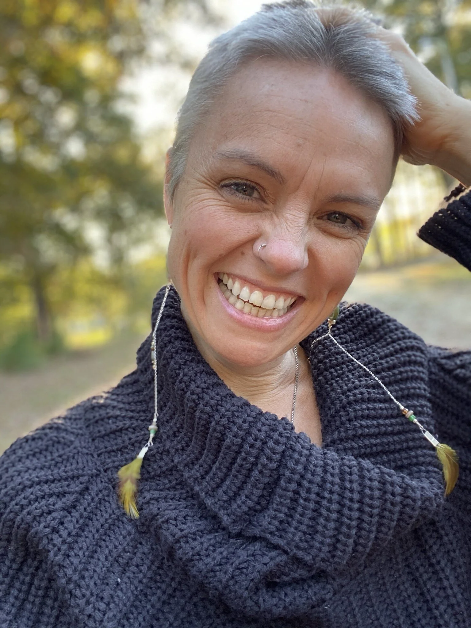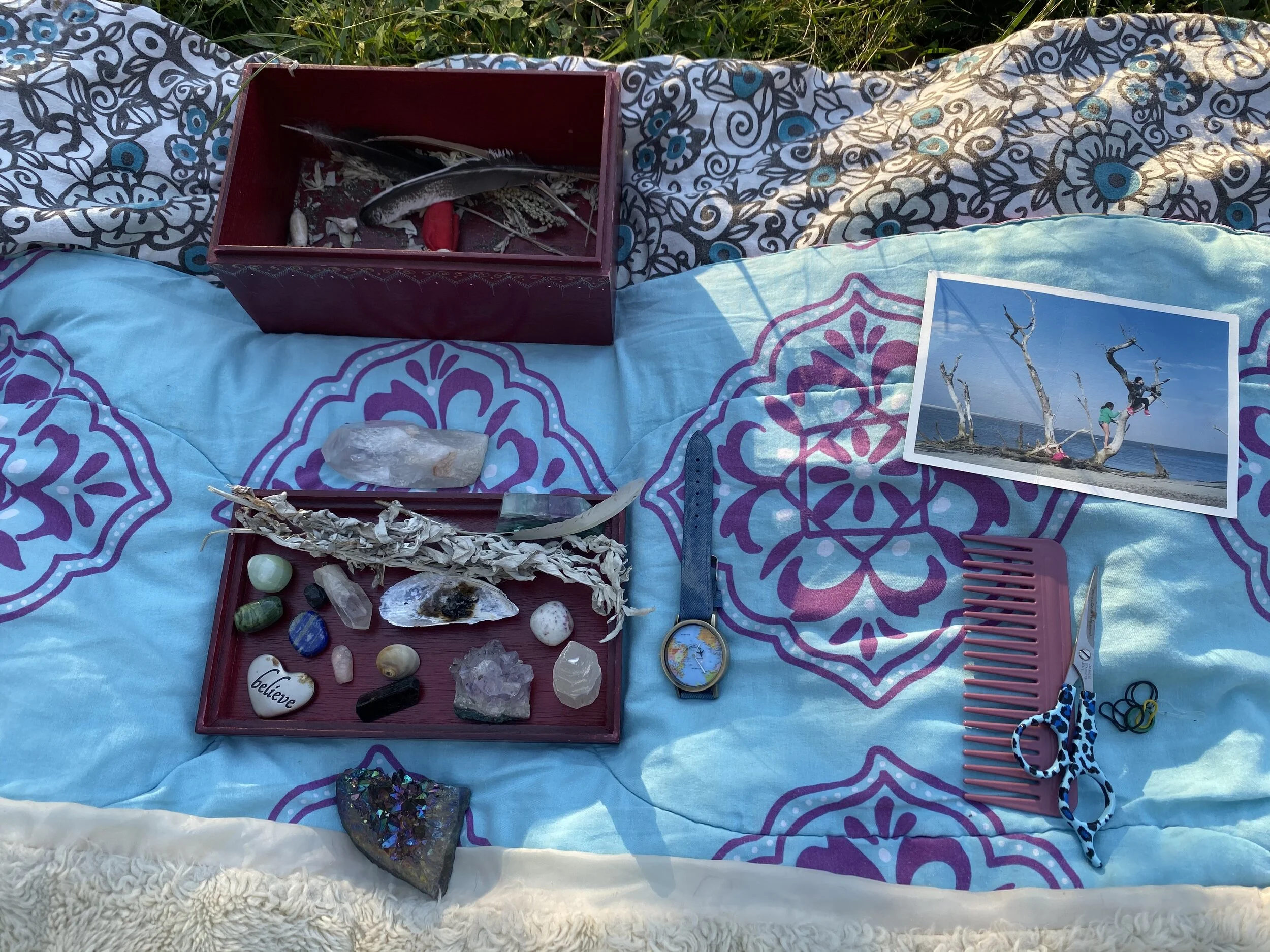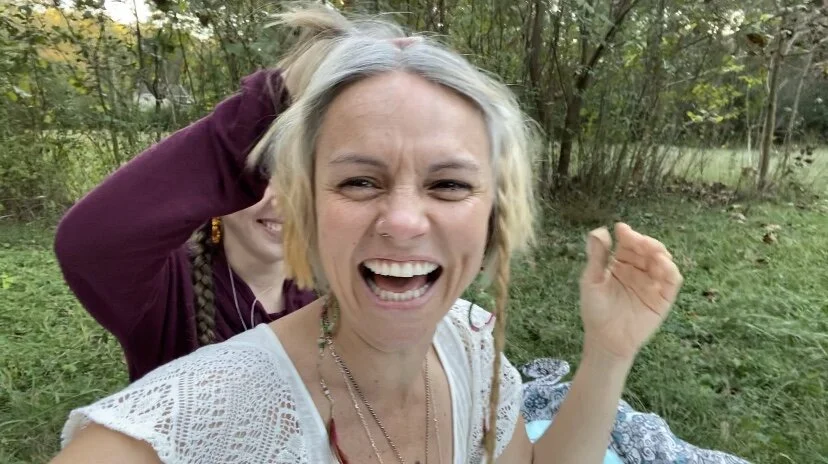 On the morning of my ceremony, grief came into my room. All kinds of grief came up. And I allowed in to sit with me. Our hair holds great power. It holds our past. Mine held so much grief, all the years of drugs I put into my system, all the hair dye that masked my silver streaks. I got my first gray hair when I miscarried and soon after my hair began to turn silver all over. All that grief came into my room with me that morning and we sat together. I thanked them for all they had taught me and I let them go in love.