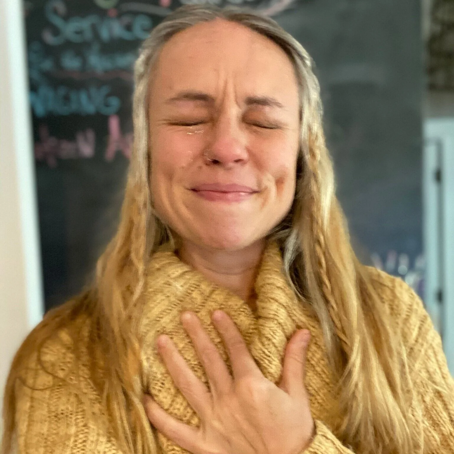 I wanted to take a few pictures of my hair before I cut it and when I turned the camera on myself I couldn’t hold back the tears. So I captured that, because it is my Truth and I’m not afraid of it anymore. Loving the “old Sarah” and the “new Sarah” and whatever “Sarah” is yet to be revealed is how I can integrate it ALL and serve from a place of peace and love.